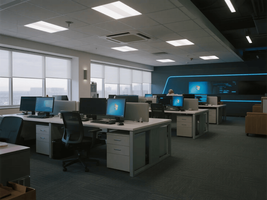智能基建全場景覆蓋:聲學(xué)分區(qū)控制確保專注,空氣動(dòng)力學(xué)通風(fēng)優(yōu)化體感,磁吸式系統(tǒng)墻支持靈活改造。材質(zhì)選用導(dǎo)電混凝土地面、納米涂層玻璃隔斷,所有設(shè)計(jì)服務(wù)于沉浸式開發(fā)體驗(yàn)。最終呈現(xiàn)一個(gè)既冷酷高效又熱血澎湃的數(shù)字創(chuàng)作者烏托邦,讓每一行代碼都在最佳環(huán)境中誕生。