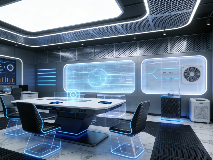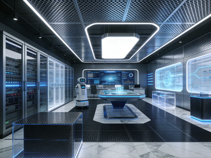 內(nèi)部功能分區(qū)清晰有序,涵蓋核心研發(fā)區(qū)、數(shù)據(jù)處理中心、產(chǎn)品演示區(qū)、多功能研討室、開放協(xié)作區(qū)及員工休閑區(qū)。研發(fā)區(qū)采用模塊化開放式工位,配備隱藏式布線與可調(diào)節(jié)設(shè)備支架,適配長時(shí)間專注研發(fā);數(shù)據(jù)中心注重恒溫恒濕與安全防護(hù),規(guī)劃獨(dú)立機(jī)柜區(qū)域保障設(shè)備穩(wěn)定;演示區(qū)搭載智能投屏與交互系統(tǒng),方便技術(shù)成果展示與客戶對接。