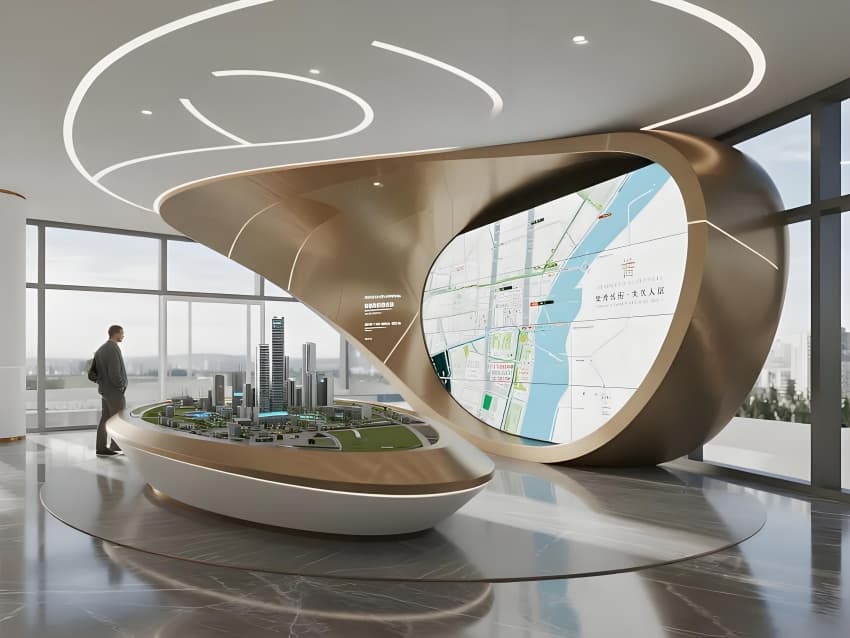 本案以"城市筑夢師"為設(shè)計(jì)理念,融合地產(chǎn)專業(yè)性與未來生活美學(xué)??臻g采用現(xiàn)代簡約語言,主色調(diào)為高級灰基底,香檳金提升品質(zhì)感,企業(yè)藍(lán)強(qiáng)化品牌識別。核心區(qū)域突破傳...