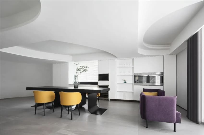 一路小徑步道蜿蜒曲折,遙相呼應(yīng)。轉(zhuǎn)過來還能看見燈光展示區(qū)的體驗與講解,之后方可落座三間不同沉侵式體驗感的洽談室。