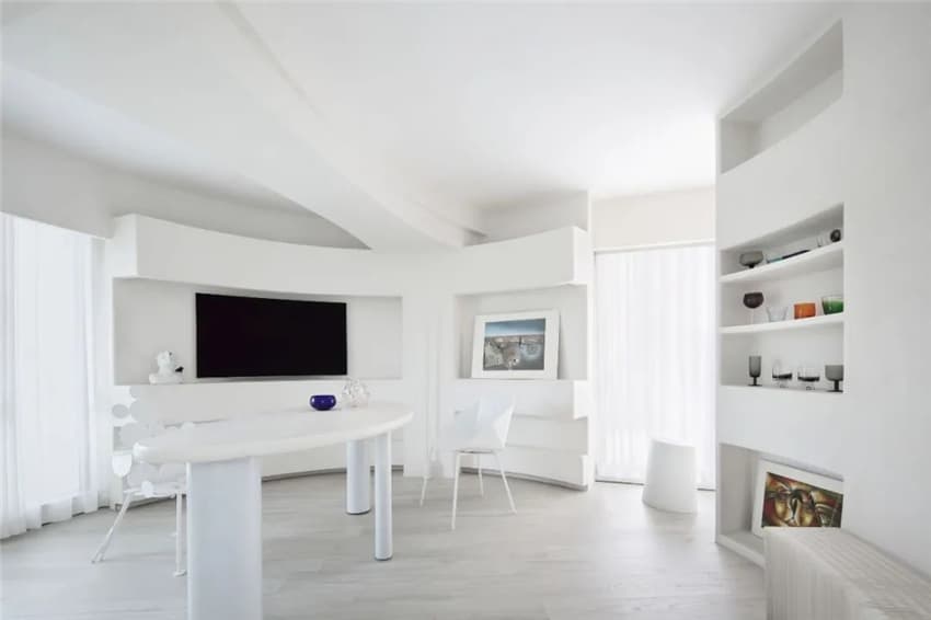 整個辦公空間沒有一處式門對門的方式,進入每個空間都有一絲小小的門廳。你會看見陽光肆意的飛舞著,在空間的各個角落里,一家藝術(shù)感的公司成形了,陽光、空氣、水都是那么的自然,期待著能帶給更多前來咨詢的業(yè)主們感官上的變化。