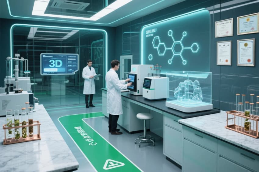設(shè)計(jì)以“傳統(tǒng)中藥文化與現(xiàn)代科研融合”為核心理念,打造兼具人文底蘊(yùn)與創(chuàng)新力的企業(yè)空間。建筑外立面采用青磚鏤空花窗與玻璃幕墻的古今對話,入口以百草標(biāo)本藝術(shù)墻與全息藥材投影營造沉浸式第一印象。研發(fā)區(qū)以實(shí)驗(yàn)室透明玻璃房結(jié)合智能藥材數(shù)據(jù)庫,生產(chǎn)區(qū)植入數(shù)字化煎藥設(shè)備與GMP可視化流程。辦公區(qū)采用原木格柵與山水屏風(fēng)隔斷,搭配智能恒濕藥材展示柜。公共空間通過二十四節(jié)氣光影裝置與藥香霧化系統(tǒng)激活五感體驗(yàn),整體以“藏醫(yī)于技”的手法,構(gòu)建一座跨越千年的現(xiàn)代中藥智庫。