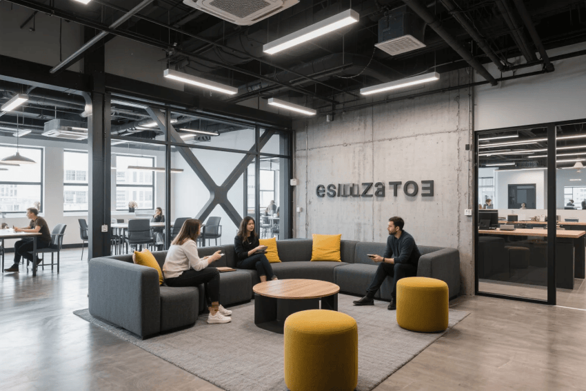 休閑區(qū)以深灰水磨石地面為基底,搭配企業(yè)亮色軟裝,如沙發(fā)、吧臺(tái)椅或藝術(shù)裝置,形成視覺(jué)焦點(diǎn)。整體設(shè)計(jì)在保留工業(yè)風(fēng)冷峻骨架的同時(shí),通過(guò)企業(yè)色的巧妙融入,塑造出兼具高效辦公體驗(yàn)與品牌個(gè)性的現(xiàn)代空間。