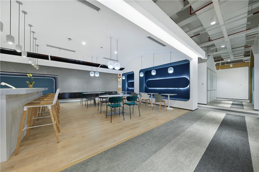 放射狀燈帶延續(xù)至空間四周極具視覺沖擊力,動靜結(jié)合、張弛有度,傳達著空間的動感和大氣。也強烈釋放著研發(fā)企業(yè)自信的特質(zhì)。