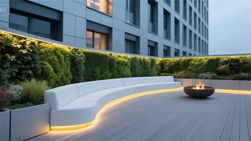 遠程會議室的環(huán)形攝像頭與聲學軟包、空中花園的模塊化花箱與夜景地燈、企業(yè)文化展廳的懸浮展柜與互動投影,在細節(jié)中植入智能科技與人文關懷。綠植隔斷、木紋材質、企業(yè)色邊框等元素重復出現(xiàn),強化空間歸屬感。