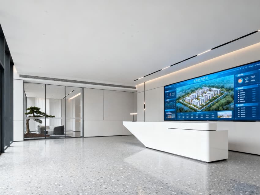 內(nèi)部設(shè)計(jì)緊扣“功能適配與生態(tài)體驗(yàn)”:核心辦公區(qū)(約1800㎡)占比最大,采用模塊化開(kāi)放式工位,淺灰防靜電地板搭配白色吸音吊頂,淺木色矮隔斷劃分部門區(qū)域,部分工位臨窗設(shè)置,保障自然采光;獨(dú)立辦公區(qū)(約500㎡)分布于空間兩側(cè),玻璃隔斷+百葉簾設(shè)計(jì)兼顧隱私與通透,適配管理崗需求;公共服務(wù)區(qū)(約600㎡)含前臺(tái)、2間會(huì)議室(15人研討+30人會(huì)議)、茶水間,前臺(tái)背景墻嵌入企業(yè)LOGO,會(huì)議室配智能投屏,茶水間設(shè)淺木色操作臺(tái)與綠植裝飾;休閑配套區(qū)(約400㎡)銜接辦公區(qū),設(shè)室內(nèi)綠植景觀區(qū)與休閑卡座,地面鋪淺木色地板,搭配藤編家具,為員工提供放松空間。?