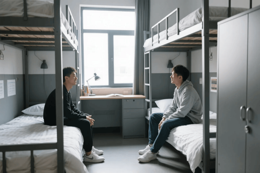 宿舍單元采用模塊化設(shè)計,中性灰的墻面基底搭配企業(yè)色軟裝點綴。定制組合式床柜集成閱讀燈、USB接口和儲物功能,床體采用企業(yè)色烤漆鋼板框架。公共休閑區(qū)設(shè)置灰色布藝沙發(fā)組合,企業(yè)色抱枕與掛畫形成色彩跳躍,天花懸掛工業(yè)風(fēng)吊燈。
