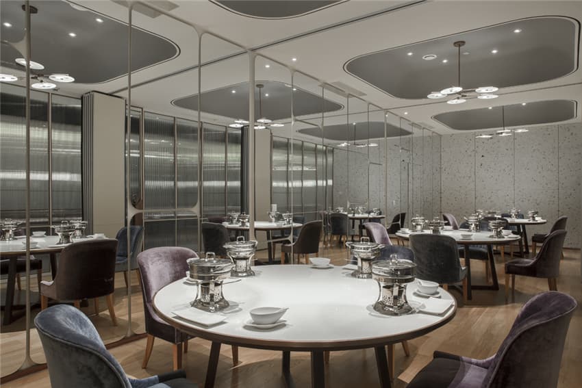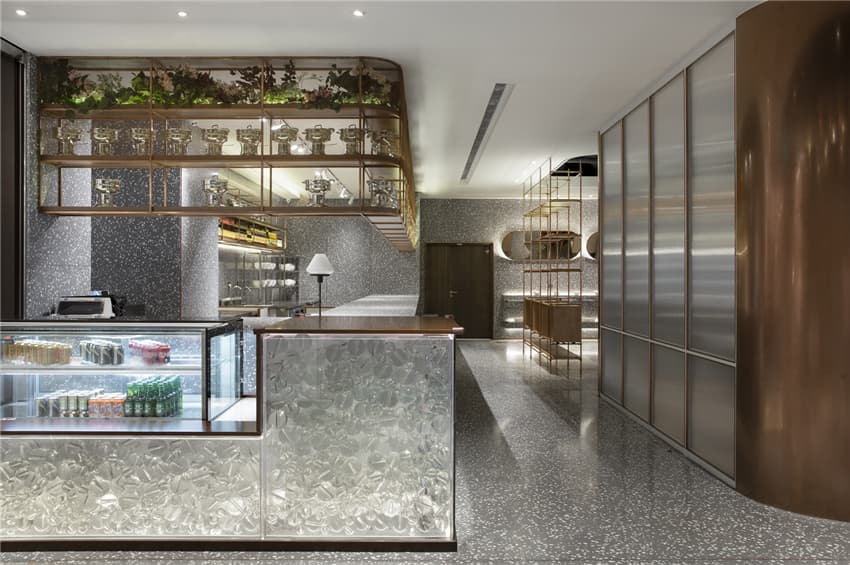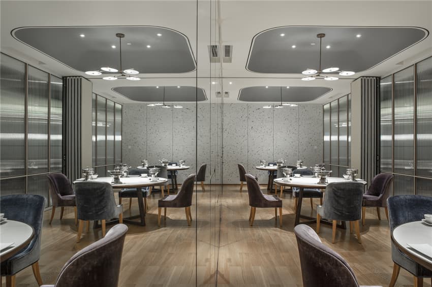 半敞開的廚房是”五感”(視覺、聽覺、嗅覺、味覺、觸覺)的綜合體驗,就餐已經(jīng)上升至“美感”的體驗。它不僅僅是食品制作的過程展示,而是一種締造美味的”SHOW”,所以在名廚區(qū)域我們也是做了很多空間的細節(jié)處理,收銀臺、名廚操作區(qū)域在不影響外觀空間的視覺美感同時還要保證衛(wèi)生規(guī)范的要求。設計是必須綜合考慮各方面的因素,絕不僅僅是美觀和情感的表達。