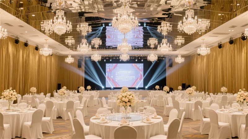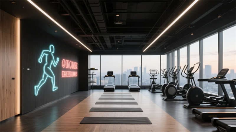 公共空間亮點(diǎn)紛呈:全日餐廳以垂直綠植墻與開放式廚房激活社交氛圍;無柱宴會廳憑借鏡面天花板與水晶吊燈陣列,打造層疊的光影盛宴;健身房通過全景落地窗將城市景觀融入運(yùn)動場景,啞光黑器械與霓虹燈裝飾碰撞出現(xiàn)代活力。細(xì)節(jié)處更顯匠心——電梯間的金屬線條浮雕、走廊的幾何光影地毯,均以藝術(shù)化手法弱化傳統(tǒng)酒店的空間邊界。
