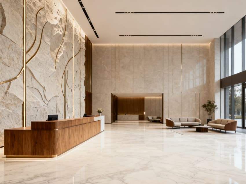 整體以米白、淺灰、淺木色為基調,通過統(tǒng)一材質(金屬線條、玻璃、環(huán)保板材)貫穿6層,避免多層空間割裂;同時優(yōu)化垂直交通,電梯廳銜接各層核心功能區(qū),搭配清晰導視系統(tǒng),實現“高效運營+舒適體驗”的設計目標,適配中端酒店的定位需求。