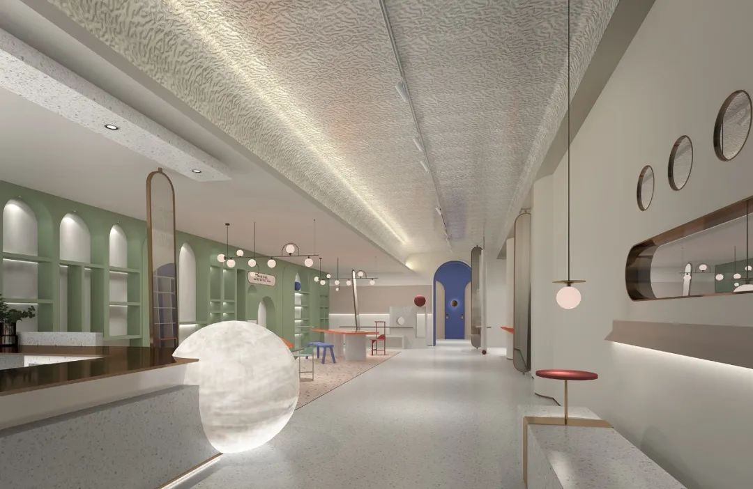 借用建筑手法與語集,雕琢室內(nèi)的建筑美感?;榛貞?yīng)的陣列式拱門在光影的作用下拉長了空間的縱深感,亦滿足了視覺上的聯(lián)動與延續(xù)。