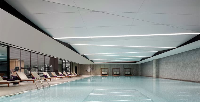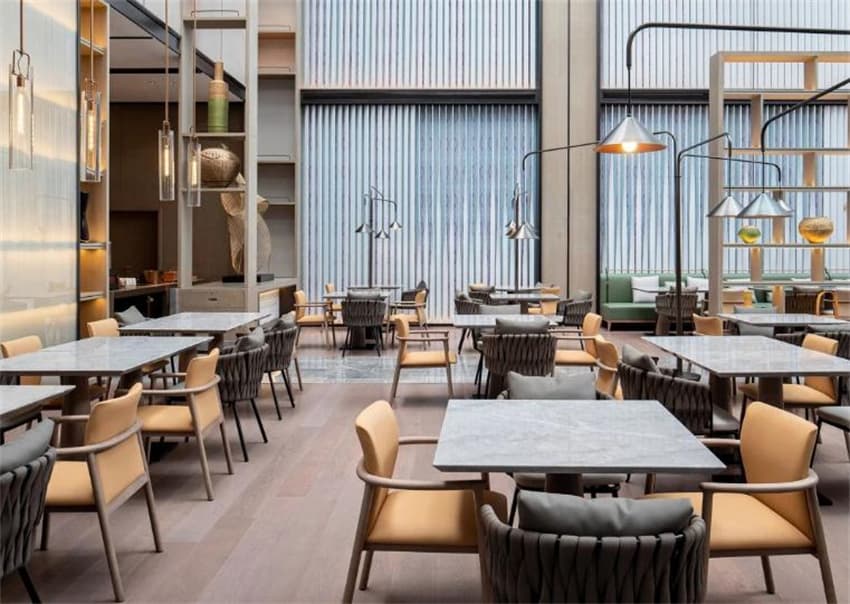 大堂整體空間視覺呈恢弘大氣之感,而水的靈動悠然賦予其一種感性氣韻,調(diào)和出別樣的空間魅力。大堂酒廊空間通透而明亮,低調(diào)溫暖的秘魯色座椅與時(shí)尚格調(diào)的沙發(fā),組合出空間舒然而悠閑的氛圍感。