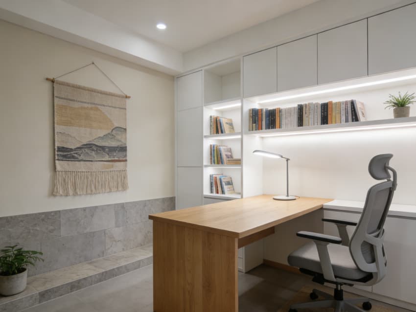 整體以淺灰、米白為基底,搭配原木色軟裝增添溫度,材質選用環(huán)保實木、耐磨地磚及棉麻布藝。墻面留白為主,局部點綴簡約裝飾畫,燈光采用暖調分層照明,配合智能調光系統(tǒng)適配不同場景。各空間通過通透隔斷自然銜接,動線流暢,既彰顯現(xiàn)代簡約的高級感,又以全場景智能配置提升旅居便捷度,實現(xiàn)美學與實用的雙重契合。