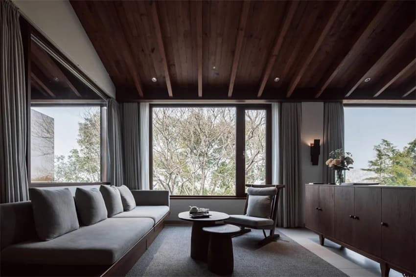 為了讓度假的客人能更多地體驗(yàn)到自然和景觀,得到更加放松的身心體驗(yàn),設(shè)計(jì)師在室內(nèi)空間同戶外景觀的交界面上做了專門的處理。