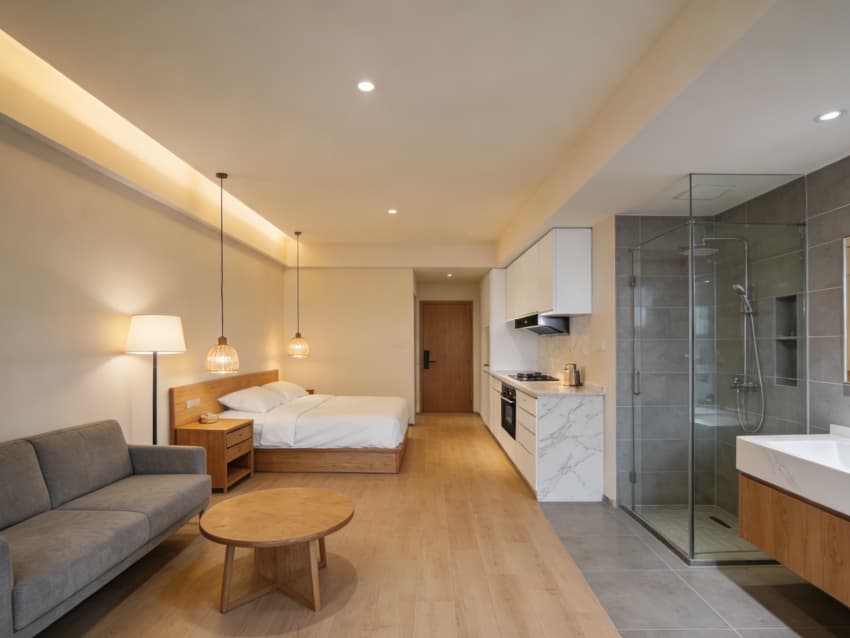 整個設(shè)計(jì)以“去酒店化、強(qiáng)居家感”為核心,通過自然材質(zhì)、復(fù)合功能與細(xì)節(jié)適配,為城市旅行者打造了一處“既像家,又比家省心”的居住空間,讓短期旅居也能擁有松弛自在的生活質(zhì)感。