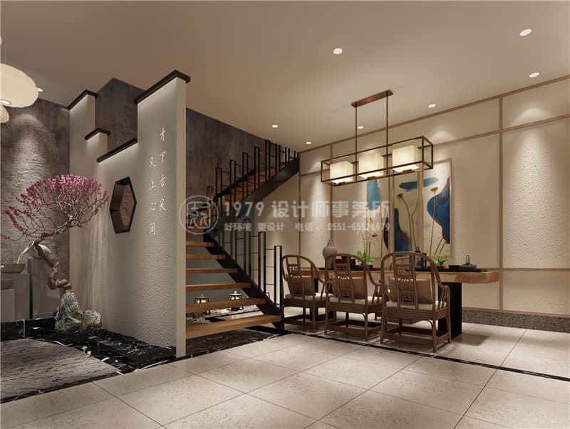 從門廳來看,門廳是顧客進入餐飲空間看到的第一道風(fēng)景線,水池水的冷色調(diào)與竹子這種偏冷的色調(diào),在整體暖色調(diào)的空間里面會顯得更加突出。從心理學(xué)的角度來分析,顧客步行進入餐廳,偏冷的色調(diào)能使人心理平靜。