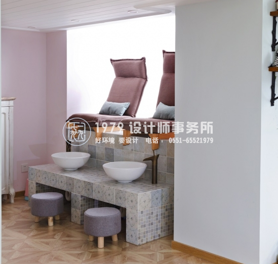 當(dāng)小編看到這套案例時真的是超級喜歡,看著這些簡單、甜美的色彩真的有一股幸福感。在空間劃分上,設(shè)計師合理的把一層的空間分為了四個區(qū)域:前臺接待區(qū)、普通美甲工作區(qū)及VIP美甲專區(qū)、泡腳區(qū)。前臺接待區(qū)做為客戶流量入口,提供飲料及咖啡,給朋友及顧客休憩、閑聊和聚會提供休閑飲品。這既可以增加額外收入也讓空間多了幾份情調(diào)。設(shè)計師在美甲工作區(qū)的設(shè)計上,利用人體工程學(xué)結(jié)合美學(xué)設(shè)計思維,大幅度提高了顧客的舒適度和空間的美感。另外一層有多出來難以利用的高臺,設(shè)計師也合理將其變?yōu)槊兰鬃阍】梢宰氖孢m的座椅。二樓房間相比一樓更加安靜和隱蔽,所以合理規(guī)劃將其作為私人儲物室和紋繡美睫區(qū);利用空間的特點最大化最合理的利用每一寸空間。對于這樣的美甲店,也同樣很重視室外的效果,因為室外裝修好壞對于吸引客戶進去欲望有較大的影響,門前用15公分高的防腐木地臺上放置有客戶休息的桌椅和遮陽傘顯得精致有情調(diào),不但美觀而且實用!縱觀整體設(shè)計,設(shè)計師在滿足了業(yè)主對于美甲店的所有功能性要求之外,利用美學(xué)設(shè)計理念打造與眾不同的空間!