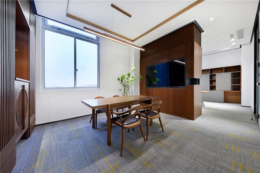 開放辦公區(qū)打破了傳統(tǒng)的辦公環(huán)境,隨時(shí)溝通無障礙,開啟高效與人性化辦公新模式。打破封閉,開闊的視野和舒適的辦公椅,紓解工作的疲憊,錯(cuò)落有致的線條對空間自由分割,構(gòu)建出的簡約造型和光影效果讓空間在錯(cuò)綜的線條中無限延伸。