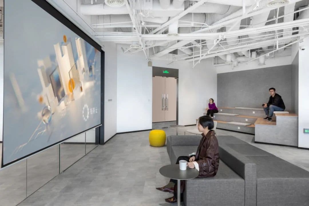 整個空間呈現(xiàn)出輕盈的姿態(tài),大面積留白給予空間呼吸感,曲線流動的造型就像一根善于變化而纖細不驚的絲線,即將牽引出一次次關(guān)于未來的探索。