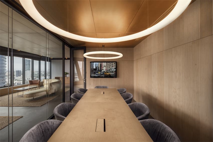 其概念是在開(kāi)放式辦公室中建造一個(gè)金盒子,在不與景觀競(jìng)爭(zhēng)的情況下,創(chuàng)造出對(duì)大型開(kāi)放空間的興趣。