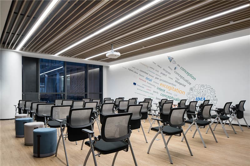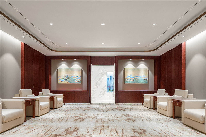 考慮到恒為科技所服務(wù)的客戶對(duì)象以政府部門為主,因此在甲方的要求下,以新中式風(fēng)格為主,柔軟的家具裝置更顯質(zhì)感。