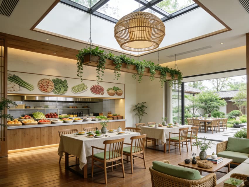 整體以原木色、淺米色、薄荷綠為基調(diào),材質(zhì)選用天然實木、環(huán)保藤編、棉麻布藝及防滑天然石材。墻面局部嵌入生態(tài)景觀墻與康養(yǎng)理念標(biāo)語,燈光采用自然漫射照明與暖調(diào)氛圍燈帶組合。各區(qū)域通過綠植廊道與木質(zhì)連廊銜接,動線舒緩,隨處可見的自然綠植與原生材質(zhì)傳遞療愈力量,既彰顯康養(yǎng)酒店的自然雅致格調(diào),又以人性化康養(yǎng)配置助力賓客身心放松,實現(xiàn)旅居體驗與康養(yǎng)需求的完美契合。