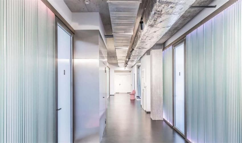 這間診所看起來更像是一家“概念店或酷酒吧”,明亮的墻壁設(shè)計(jì)、鏡面隔斷和色彩斑斕的石材表面使得這個牙科診所內(nèi)形成一種“酷酒吧”美感。