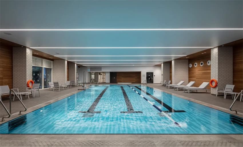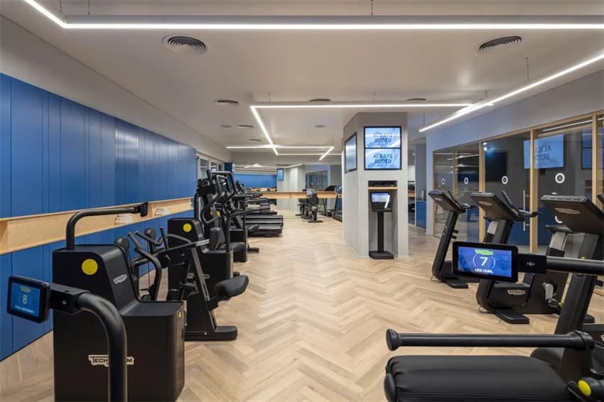 敬老院中還有很多健身、娛樂設(shè)施。健身房的墻面使用了明艷的鈷藍色,涼爽又不失活力。