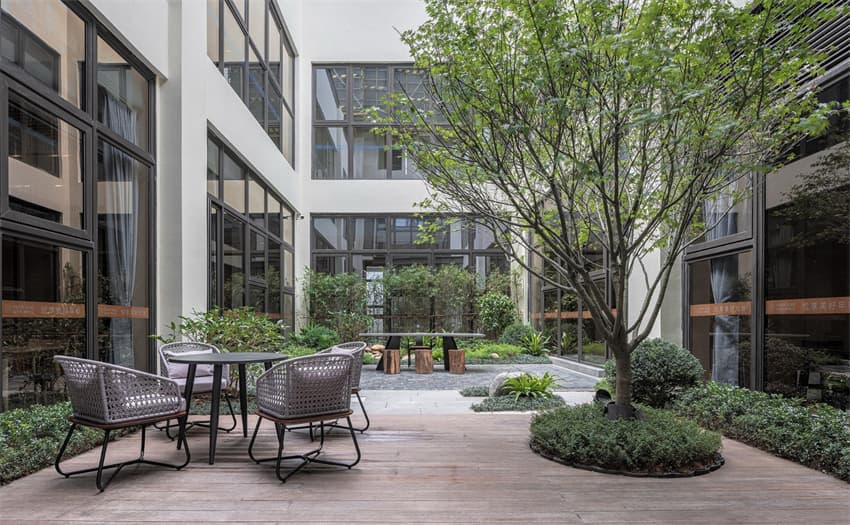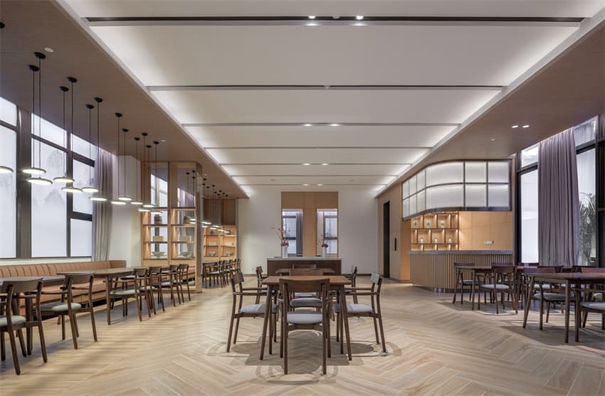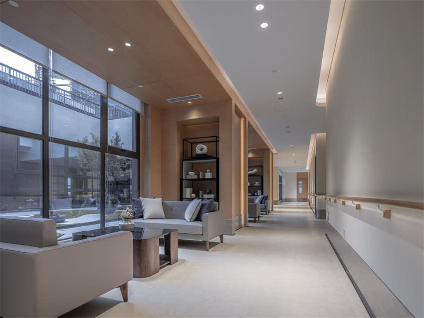 在本案的設計中以無形的手法強化空間的美感與舒適。基于感性創(chuàng)造、情感關懷、人性關照等維度,設計探索無障礙、適老化、精細化配置,構建出城市養(yǎng)老新生態(tài)下的社區(qū)"會客廳",表達生活之美與豐贍,予人歸屬感。
