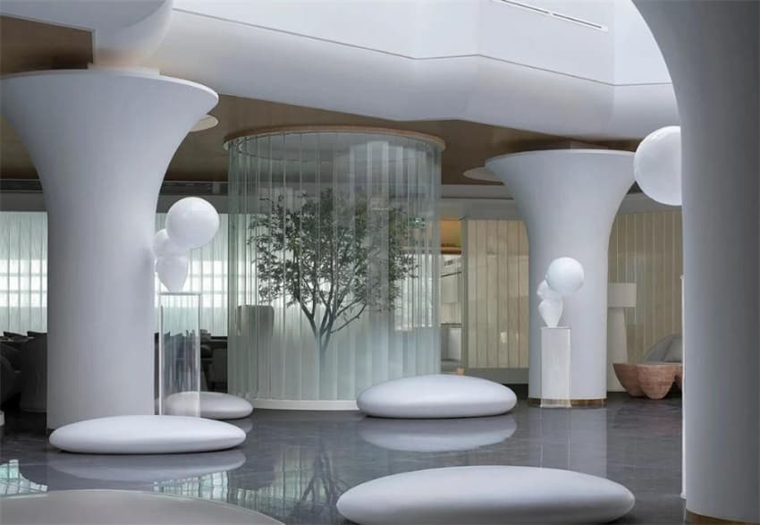 我們以“停擺的小時(shí)光”為設(shè)計(jì)主題,以假日的視角和基調(diào)重新定義月子,12000平米的空間中,柔和的形體,迷離的光影,都滲透出假日的安寧,從容。愿媽媽們在這里體會(huì)到度假般的輕松愉悅。